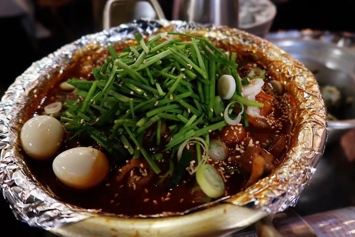4.joahae酸辣鸡爪:弘大附近这家鸡爪可太好吃了,酸辣入味,我们点了一锅慢慢煮的,真的骨头都能吮干净。另外还可以点一个飞鱼籽饭,自己捏成一个个饭团,直接吃或者泡在鸡爪里吃很过瘾。
