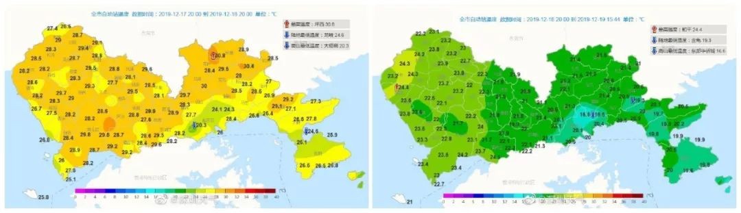 而对深圳的降温也很明显