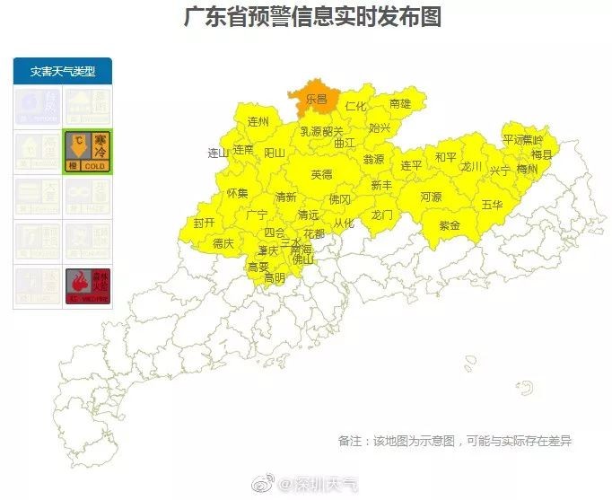 让粤北地区纷纷挂出了寒冷黄色预警
