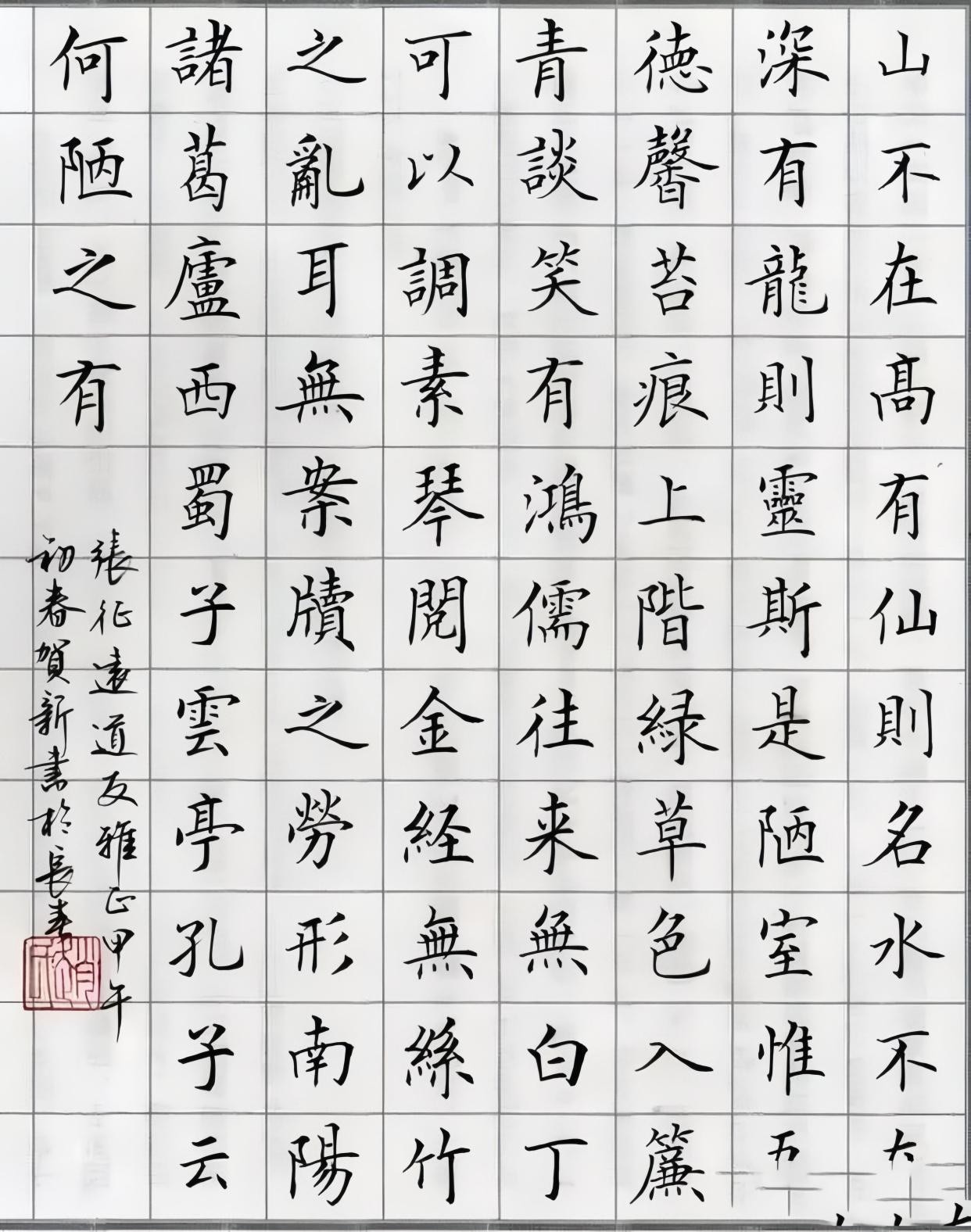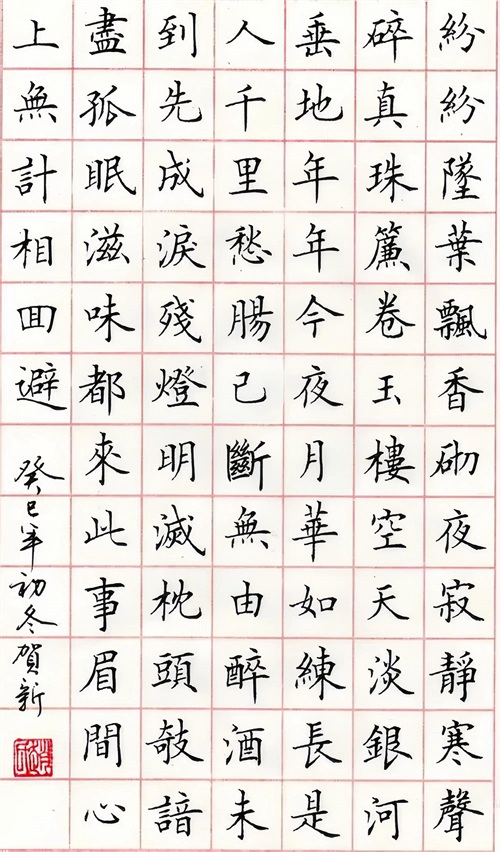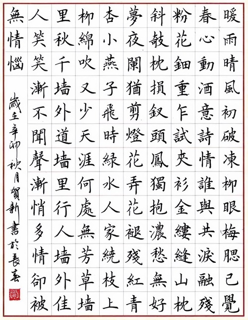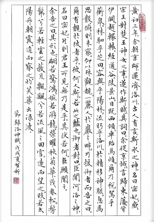 他的硬笔书法基本功十分扎实,可以看出他在这方面下了很大的功夫。其书法笔法精到细致,结构严谨考究,章法和谐统一,可以说是笔笔一丝不苟,字字恪守法度,整体书风是工整、端正、美观的,非常适合初学者临摹学习。