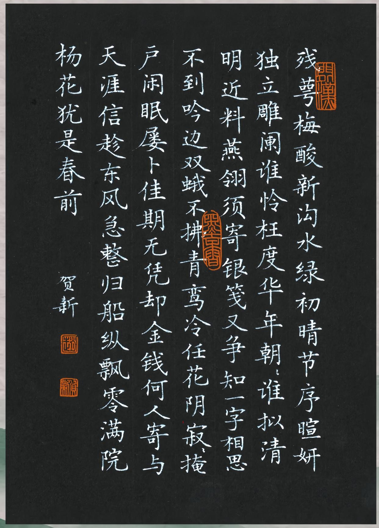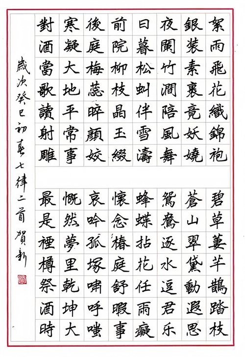 赵贺新,1977年出生,吉林省长春市人,中国民主建国会会员。当代硬笔书法家、书法教育家。曾任《中国篆刻钢笔书法》杂志编辑,吉林大学尚德学校教师,第四届全国硬笔书法教育办学高研班特聘讲师,第二届全国硬笔书法教学精英高级研修班特聘讲师等职。