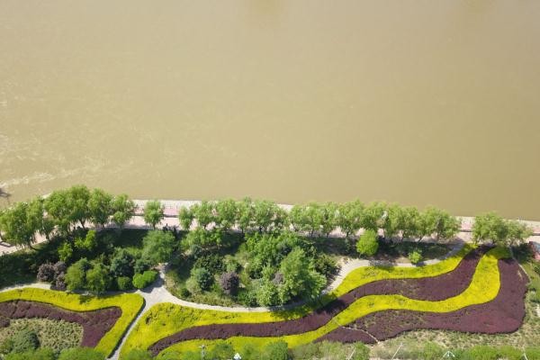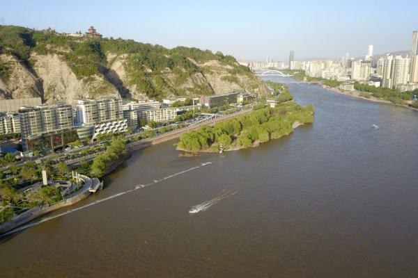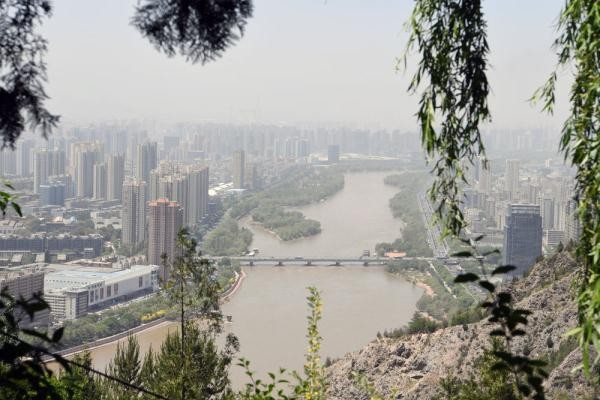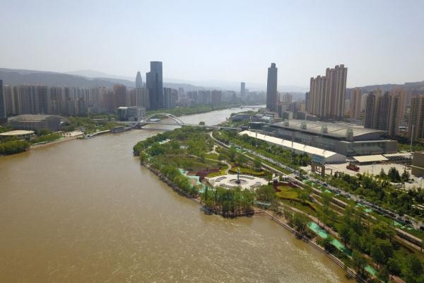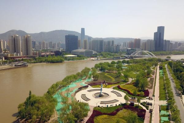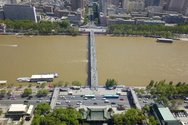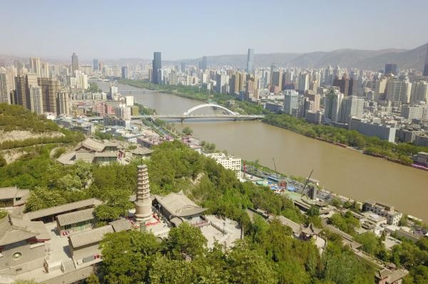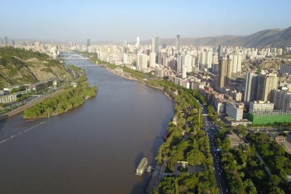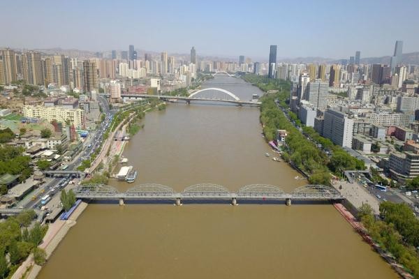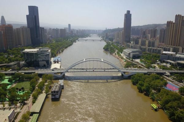 ↑这是5月8日拍摄的黄河兰州段景色(无人机照片)。