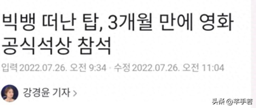 7月27日,Bigbang前成员TOP在韩国复出的事件越闹越大,此前他出席了在首尔举办的《紧急宣言》的试映会,这是他时隔整整3年再次出现在摄像机之前,要知道此前他可是承诺过自己绝对不会在韩国复出,也正是因为这样Bigbang才会出现回归不活动的情况,结果如今TOP选择违背自己的承诺,韩流网友直接破防。