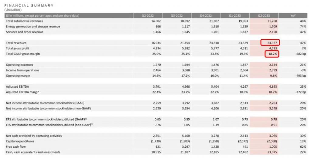 7 月 20 日,特斯拉发布的今年第二季度财报显示,其今年第二季度营收 249 亿美元,同比增长 47%,高于市场预期的 245.1 亿美元,再创新高;净利润(GAAP)为 27.03 亿美元,同比增长 20%,高于市场预期的 23.9 亿美元。