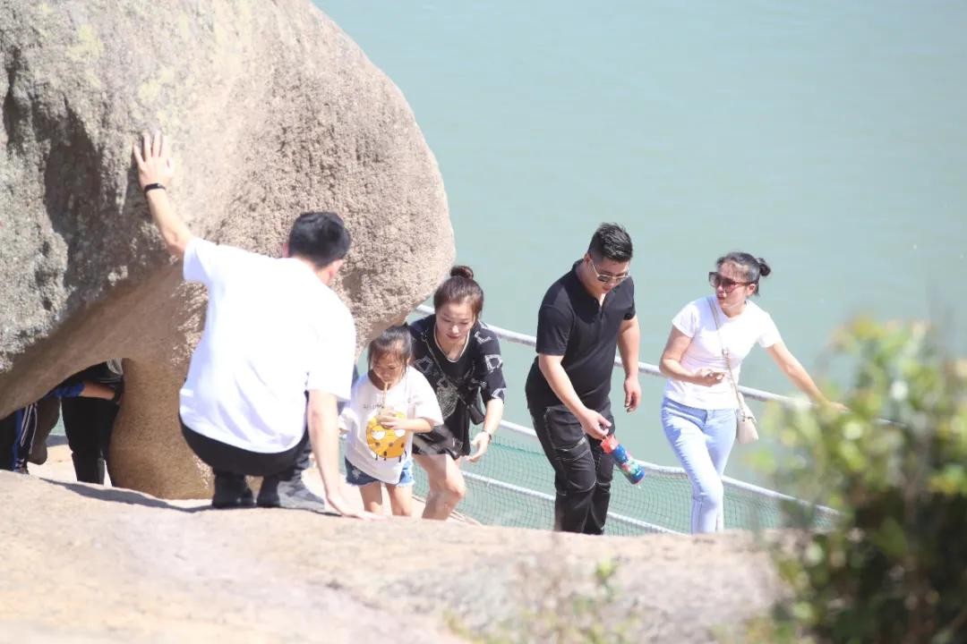 在岛内,游客们拾阶而上,临奇石、观沧海、沐山色。和煦的阳光下,海面波光粼粼,更增添了几分别样的景致。欣赏美景之余,游客们纷纷用手机拍照留念。站在高处,眺望 “海上渔城”,也给游客们带来了别样的观赏体验。
