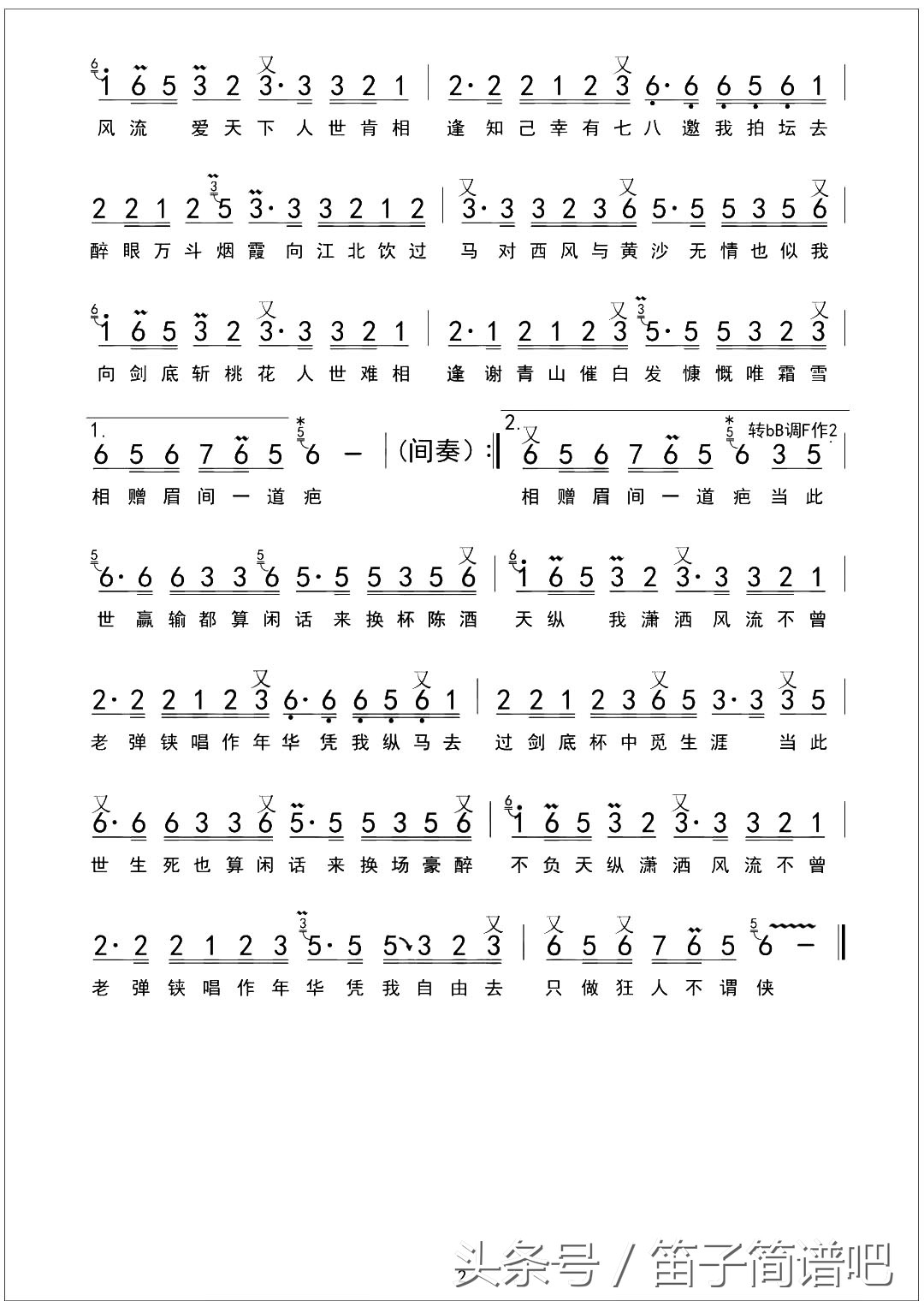 《不谓侠》(笛子简谱)l侠之大者为国为民?