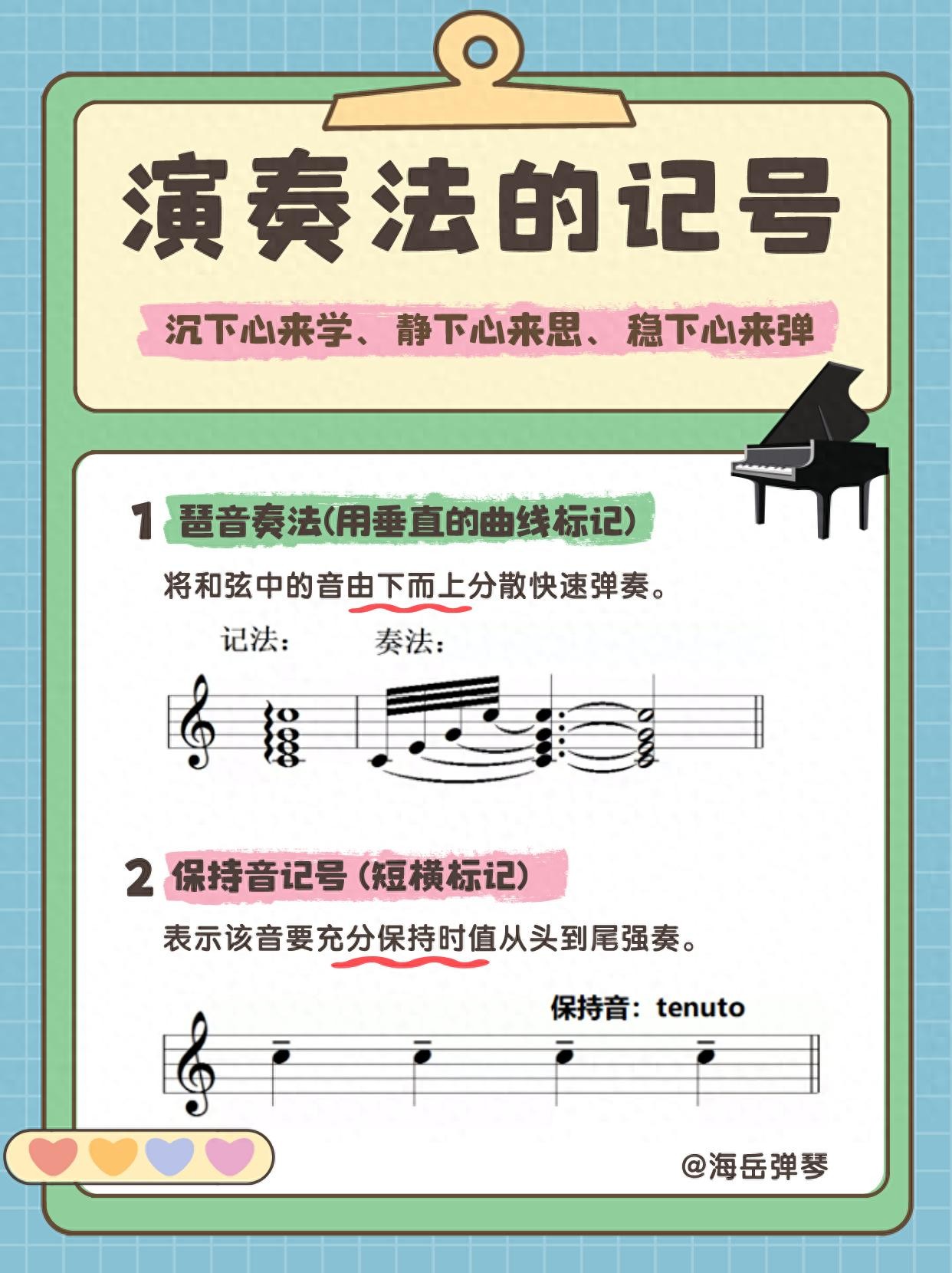 弹奏:将和弦中的音由下而上分散快速弹奏。