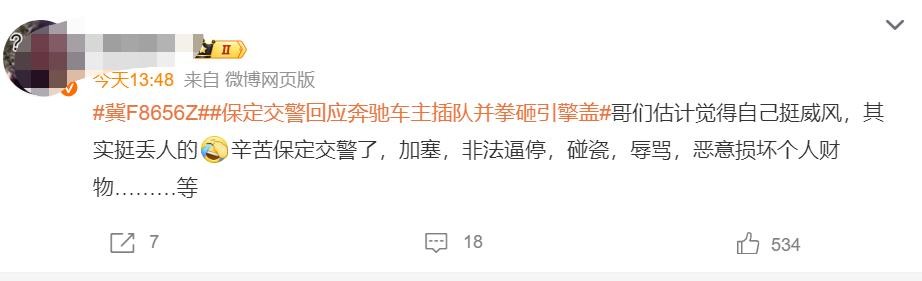气愤不平的网友纷纷在网上艾特河北交警,要求严肃处理这名男子。