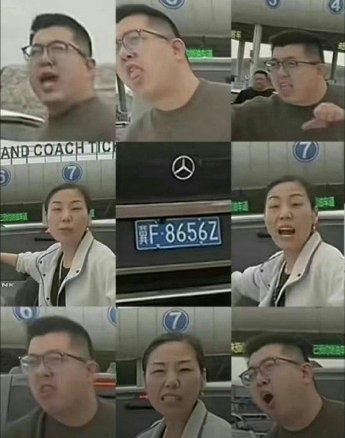 两人联手一起对白车内的拍摄者进行言语攻击,嘴里一直说着不干不净的话。
