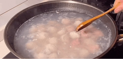 把火调到中火,煮至水开,然后关火,再焖煮两分钟。这样丸子就完全熟了!