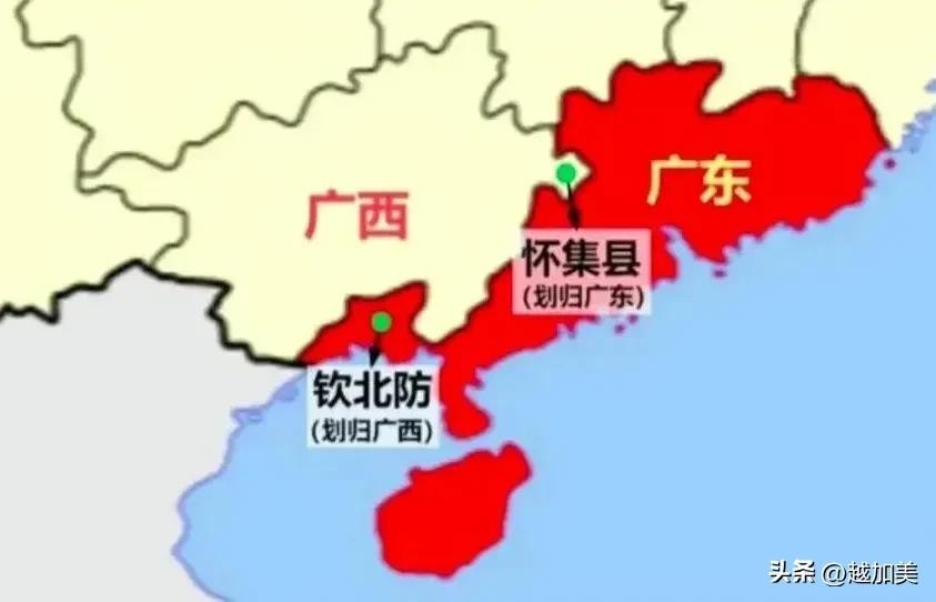 明初朱元璋将钦北防地区划给广东管辖,历经清朝、民国,直至1965年7月,长达约600年广西成为内陆省份。