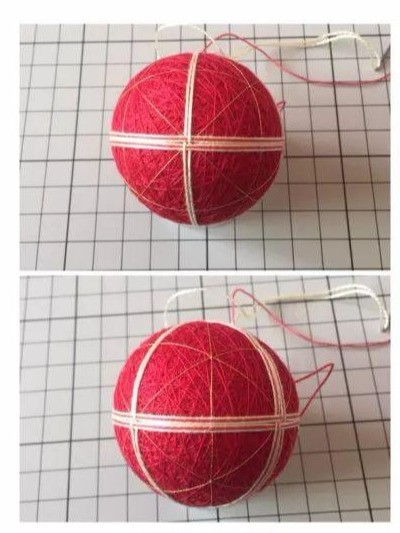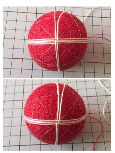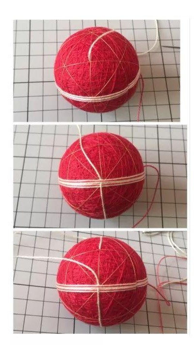 在分球线两侧绕圆周(做几圆依据球的大小),注意线接头的处理。